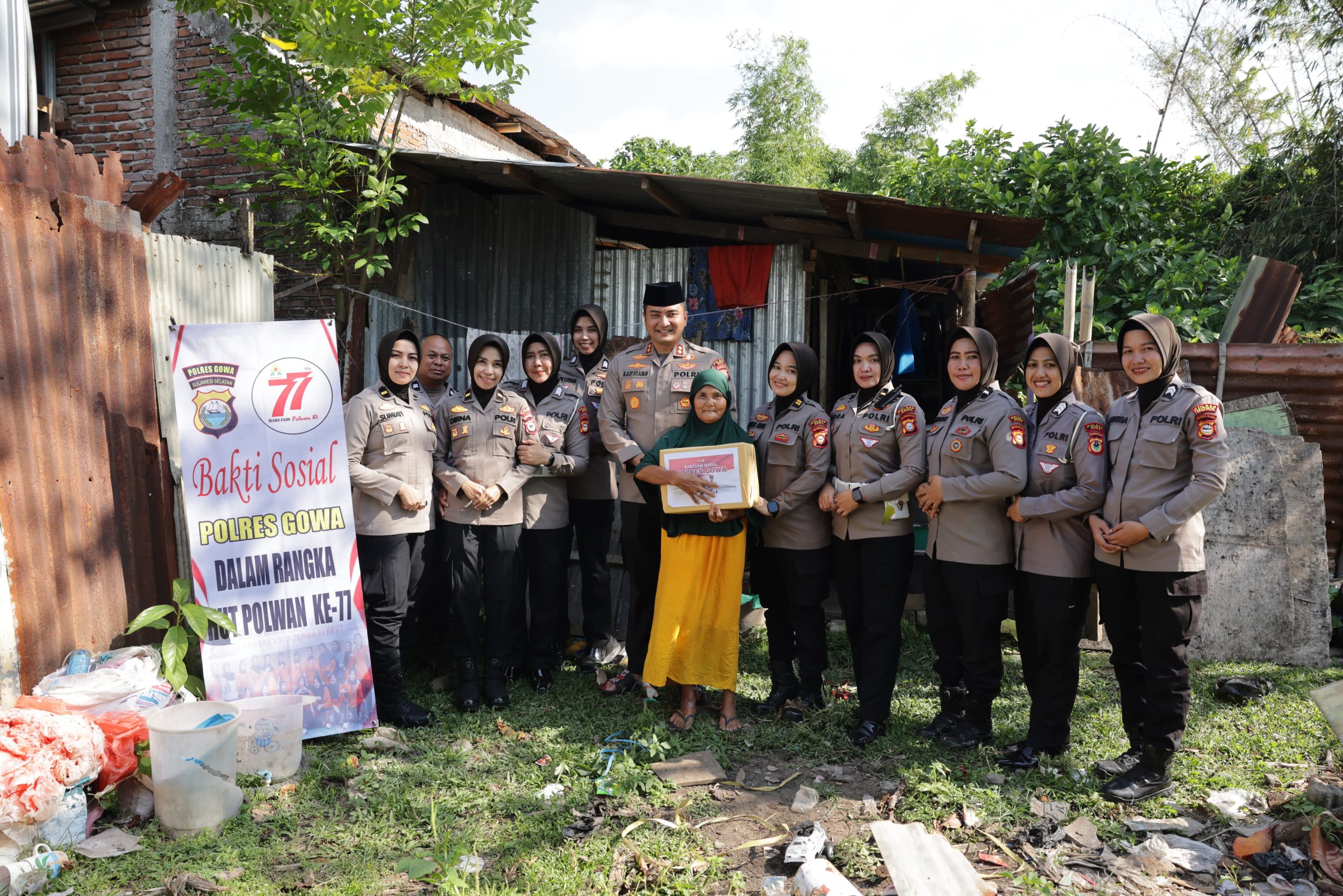 Bakti sosial tersebut dipimpin langsung oleh Kapolres Gowa, AKBP Muhammad Aldy Sulaiman, S.I.K., M.Si., bersama jajaran Polwan Polres Gowa dengan menyasar warga yang kurang mampu.