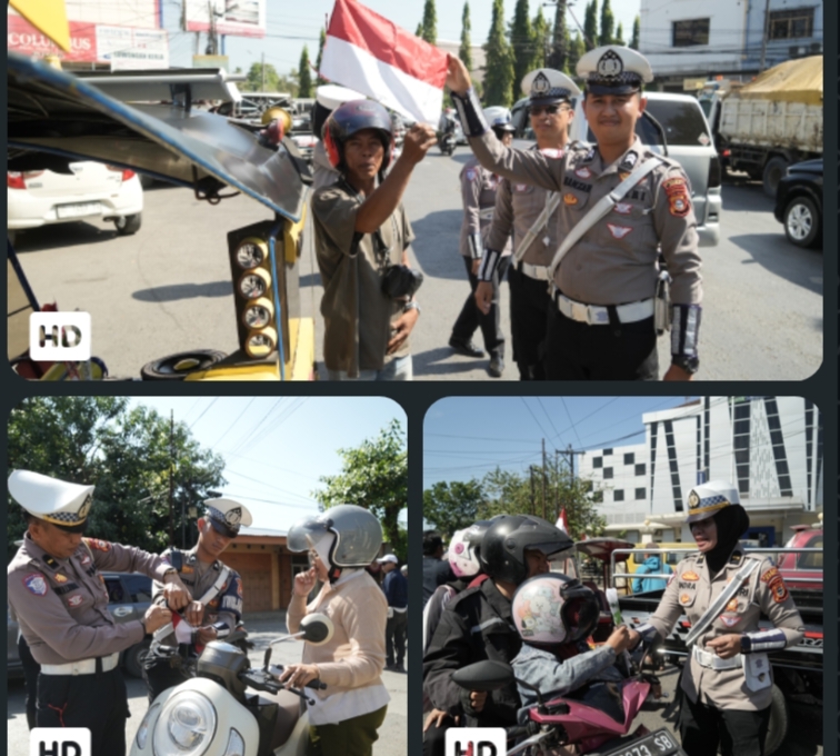 Aksi simpatik ini disambut antusias oleh masyarakat, yang tampak senang dan memberikan apresiasi kepada jajaran Satlantas Polres Gowa atas kepedulian dan semangat kebangsaan yang ditunjukkan.