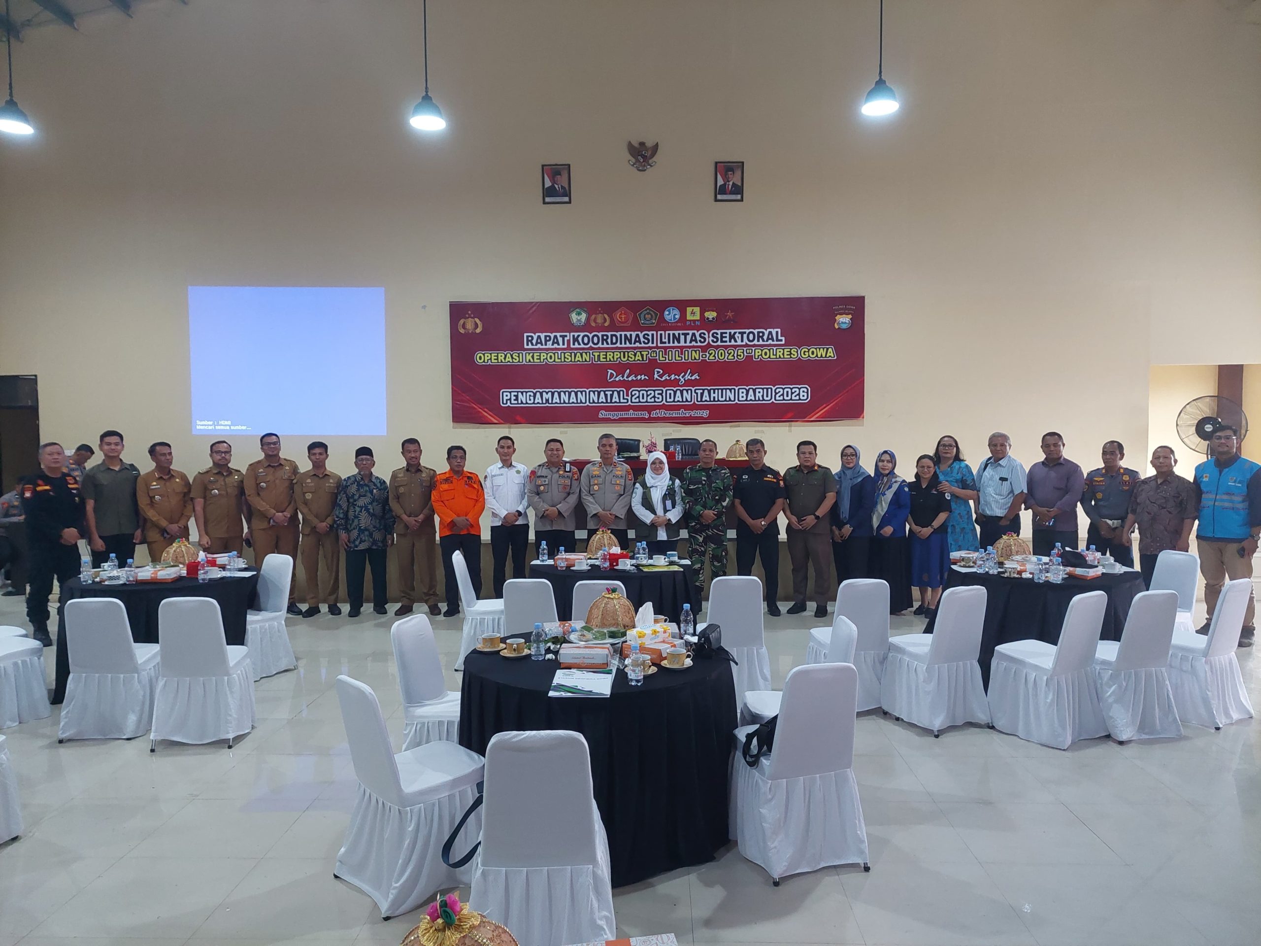 Taruna Tipikor news.com–Polres Gowa menggelar Rapat Koordinasi Lintas Sektoral Operasi Kepolisian Terpadu Lilin-2025 dalam rangka pengamanan perayaan Natal 2025 dan Tahun Baru 2026, bertempat di Aula Rewako Wira Wicaksana Polres Gowa, Selasa (16/12/2025).